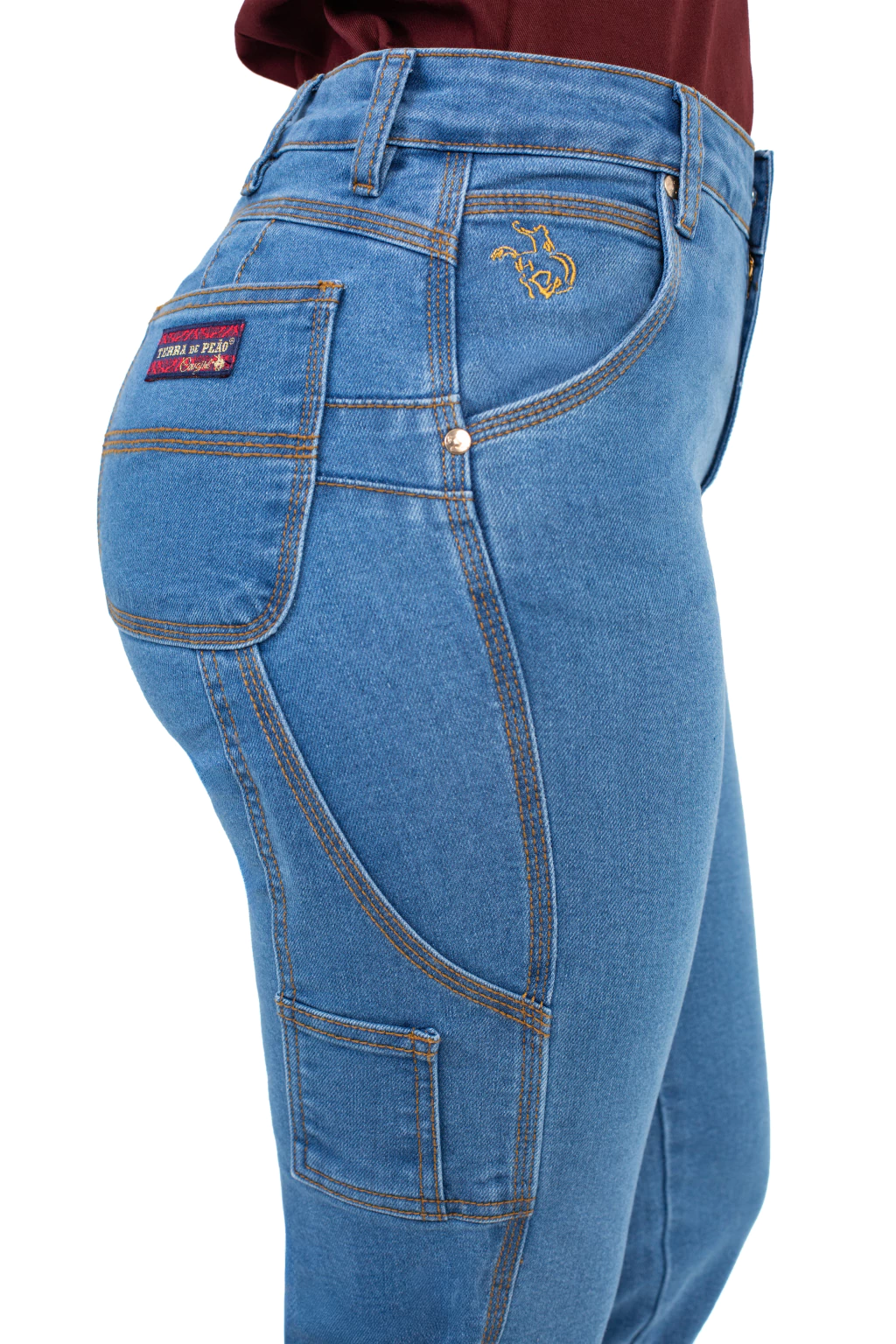 CALÇA FEMININA CARPINTEIRA COM LYCRA - A Calça Carpinteira Feminina é a união perfeita entre praticidade, resistência e estilo. Desenvolvida para mulheres que levam uma rotina ativa, seja no campo ou na cidade, essa peça oferece conforto, funcionalidade e um visual robusto que carrega autenticidade.
