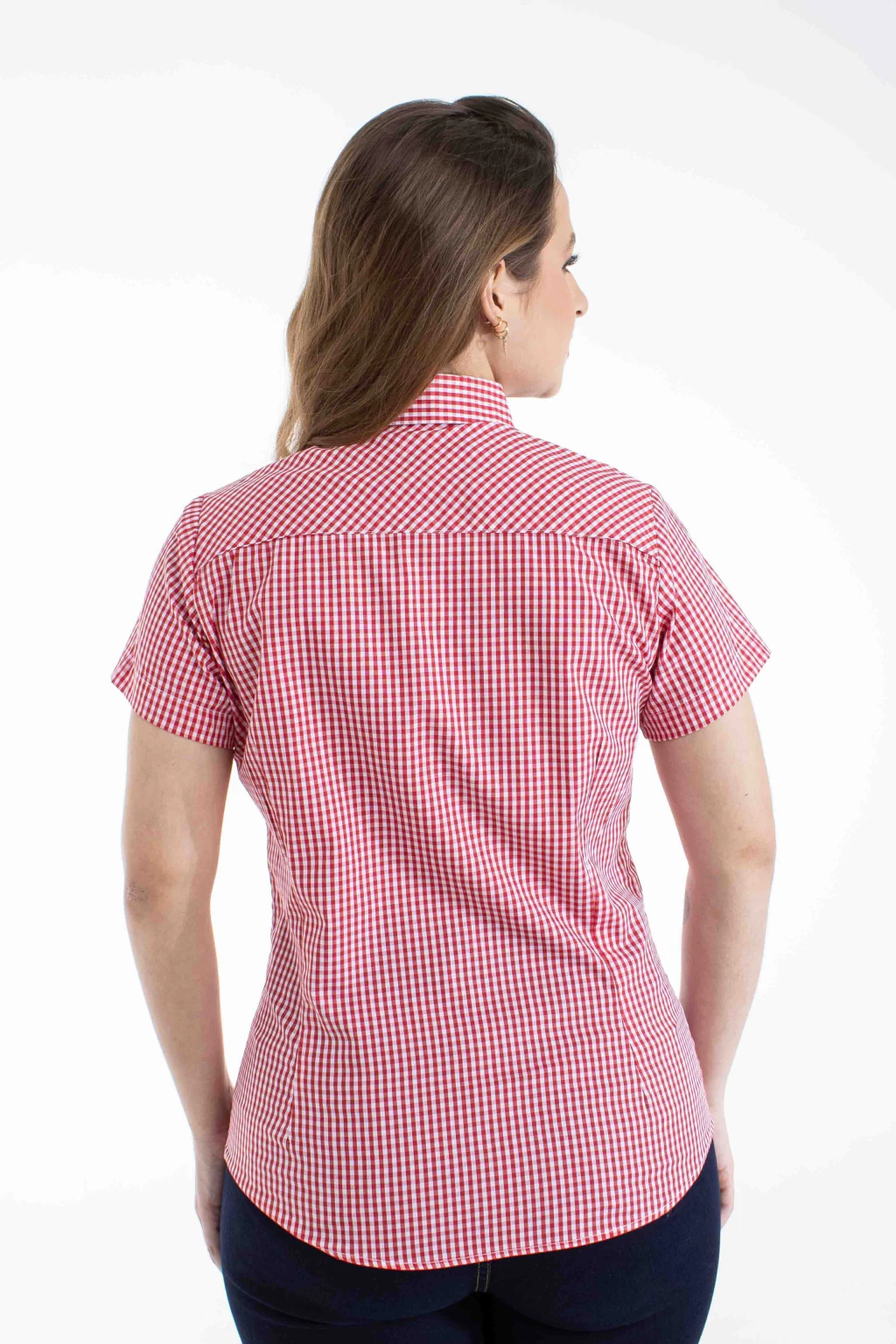 Camisa Feminina Xadrez Mosaico Manga Curta - Vermelha - 40055.062