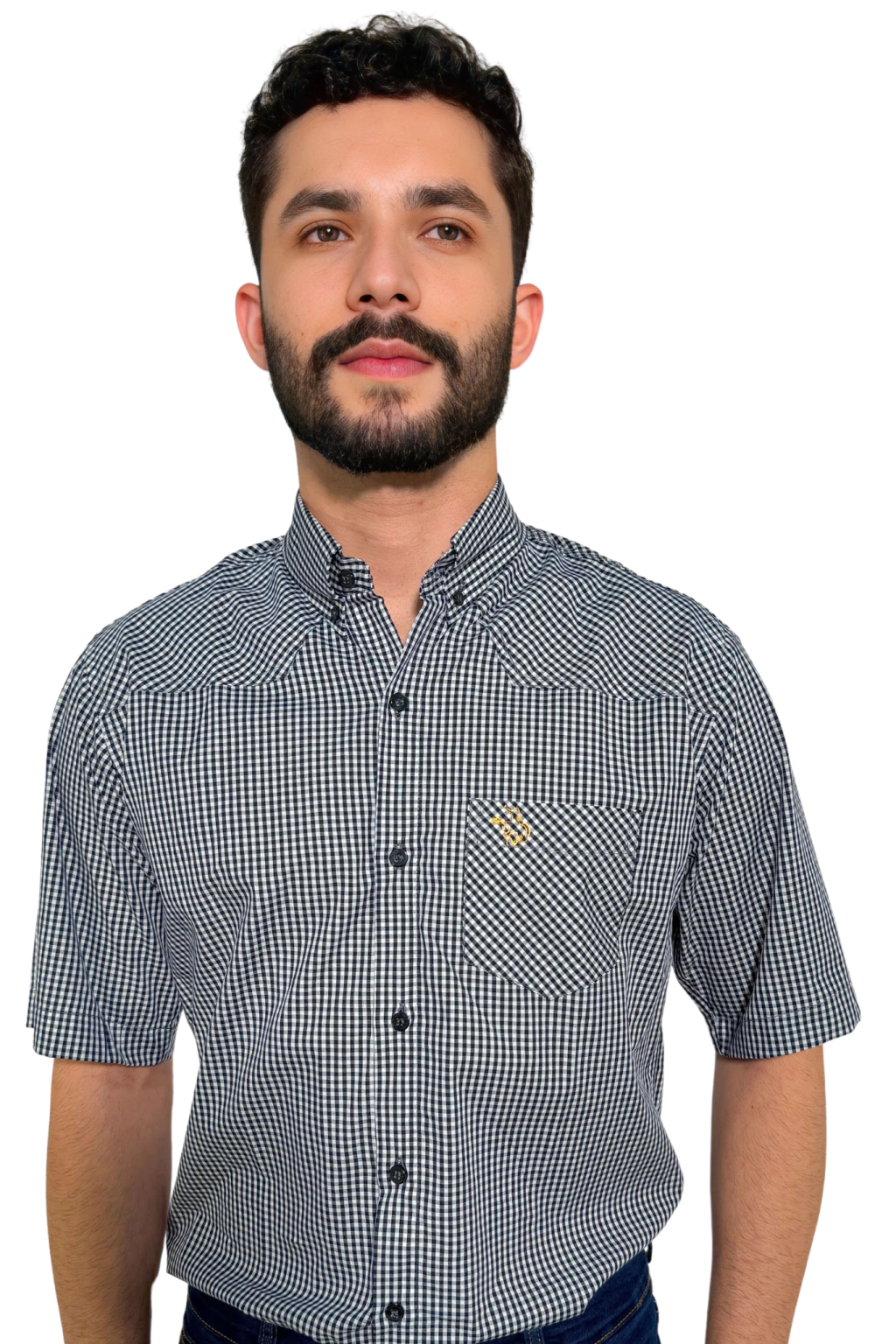 Camisa Masculina Xadrez Manga Curta Preta - 40078.040