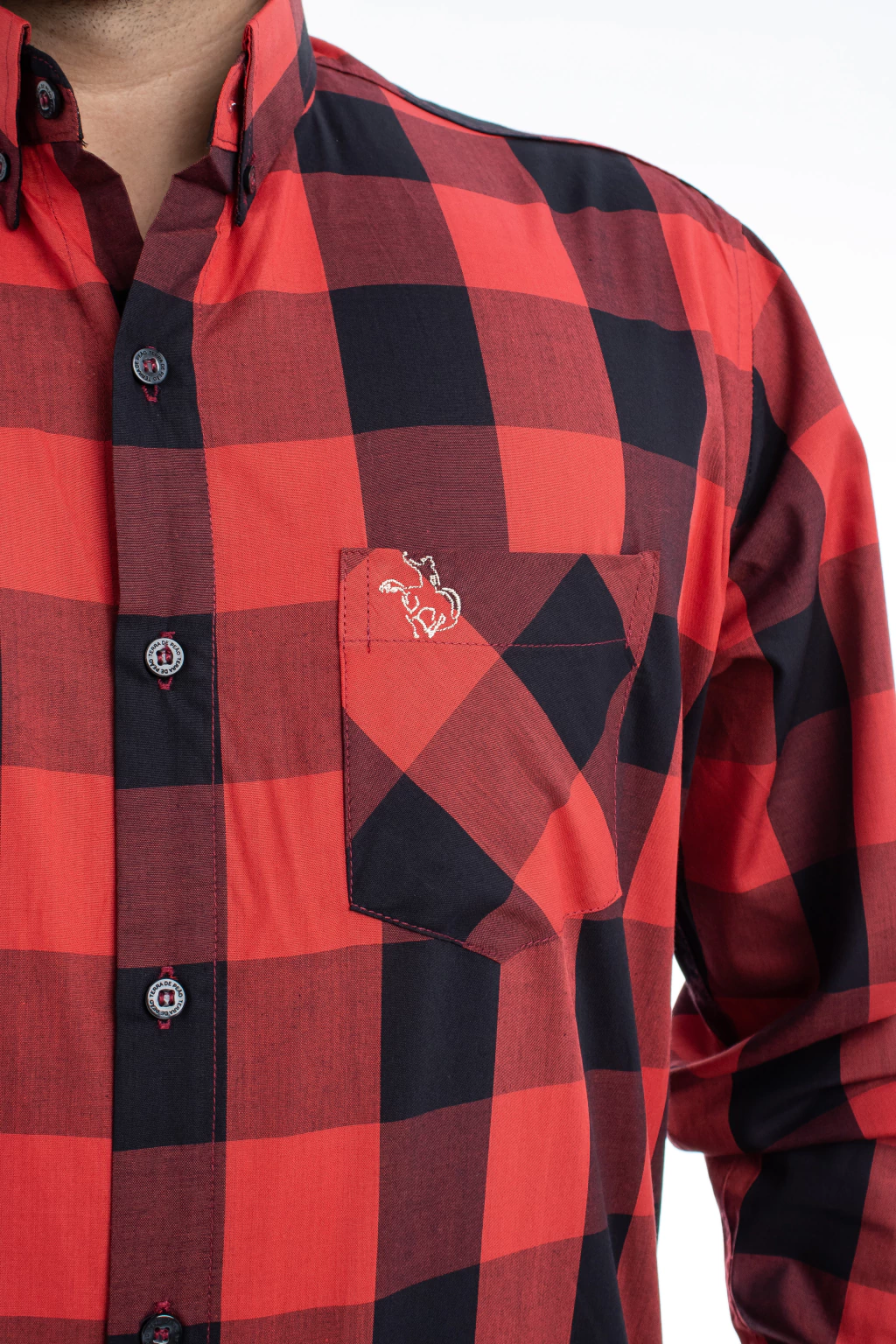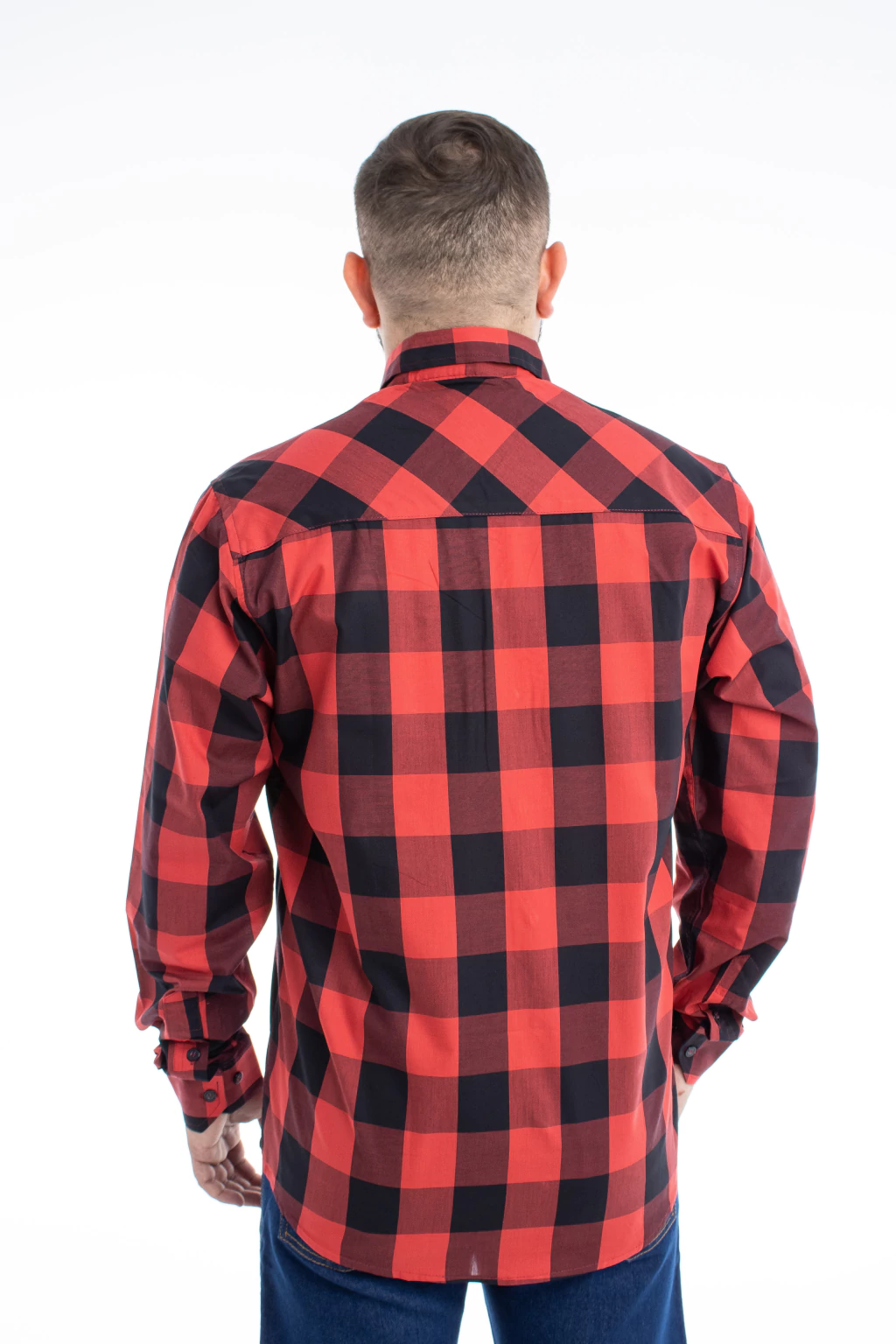 Camisa Masculina Xadrez Manga Longa Vermelho e Preto - 40009.624