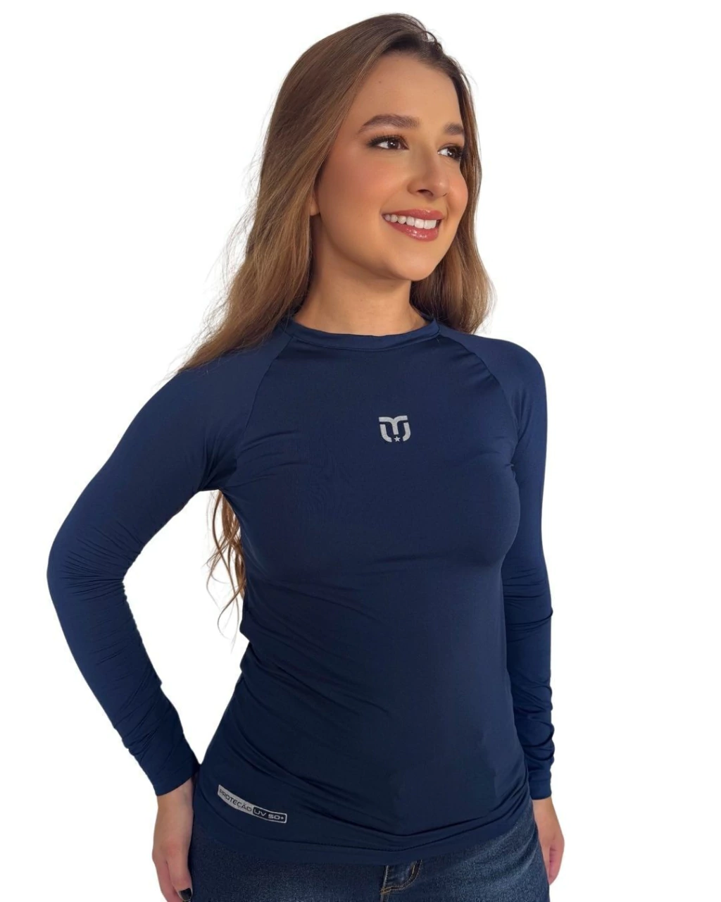 Confeccionada em tecido tecnológico com fator de proteção solar UV 50+, a peça é perfeita para dias ensolarados, oferecendo barreira eficaz contra os raios UVA e UVB sem abrir mão do estilo. As mangas longas ampliam a cobertura, enquanto a composição com elastano garante liberdade de movimento e ajuste impecável ao corpo.